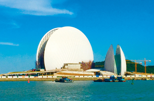 中國.一建設在海島上的歌劇院——珠海歌劇院2010年4月28日將動工建設,選址位於情侶路野狸島海濱,憑海臨風,選址.具.色。該項目規劃用地麵積5萬平方米,總建築麵積約5萬平方米,投資估算約10.8億元.幣。2013年12月29日主體結構封.。